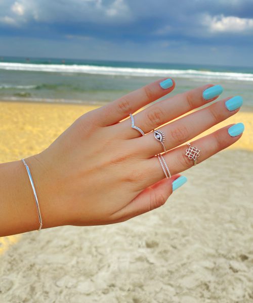 טבעת סלסול תכלת WAVES מכסף אמיתי 925