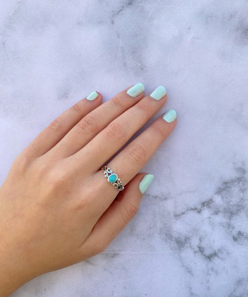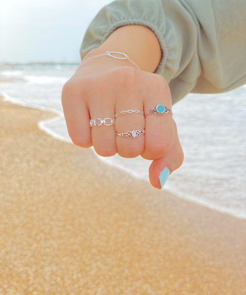 טבעת סלסול תורכיז WAVES מכסף אמיתי 925