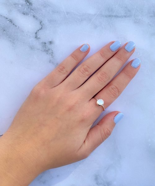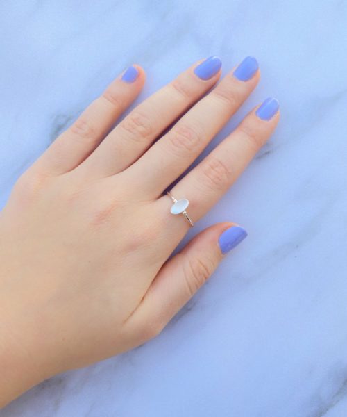 טבעת אבן לבנה אובל מכסף אמיתי 925