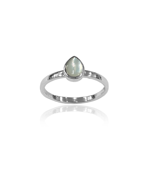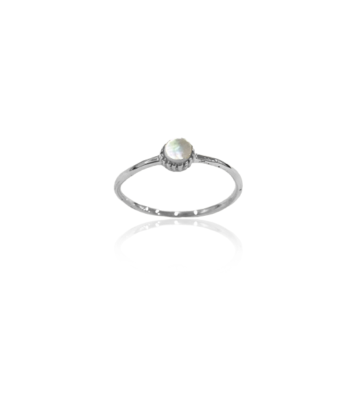 טבעת אבן לבנה עדינה מכסף אמיתי 925