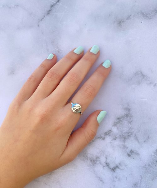 טבעת חריטה כוכב ים מכסף אמיתי 925
