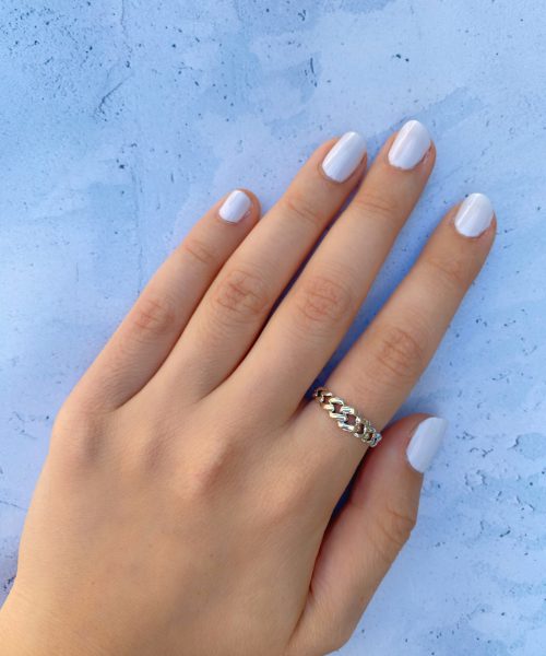 טבעת 2 שורות צמה מכסף אמיתי 925